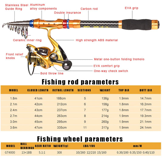 Feeder Sea Pole Combo Carbon Telescopic Spinning Fishing Rod Reel Set Short Travel Pole Combo Baitcasting Rod Full Set